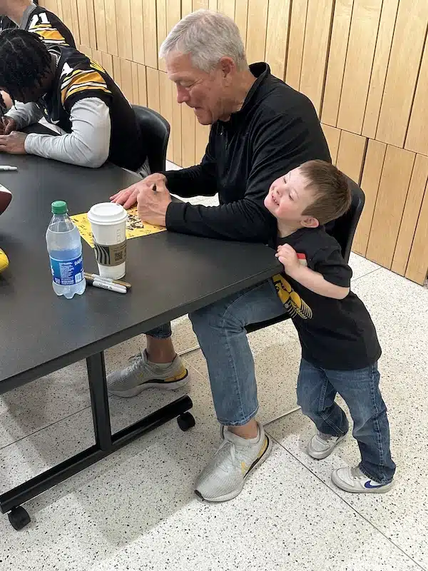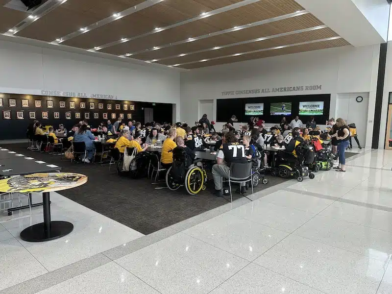 A special thank you to Kirk Ferentz and the University of Iowa Senior Football players for making a dream come true for dozens of Camp Courageous Campers! Thank you to Joseph ‘Sam’ Brinks, Assistant Director of Player Development for doing the behind-the-scenes work orchestrating the event at the University of Iowa Hansen Performance Center.