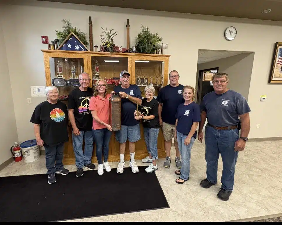 A huge thank you to Maribeth Terrell Moore who donated a 1920 fire extinguisher to Camp Courageous Garage Sale earlier this month. As a committee we decided to donate this historical piece of the community to the Manchester Fire department. We want to give this donor a very special Thank you for thinking of us. We know the Fire department will take very good care of this piece.