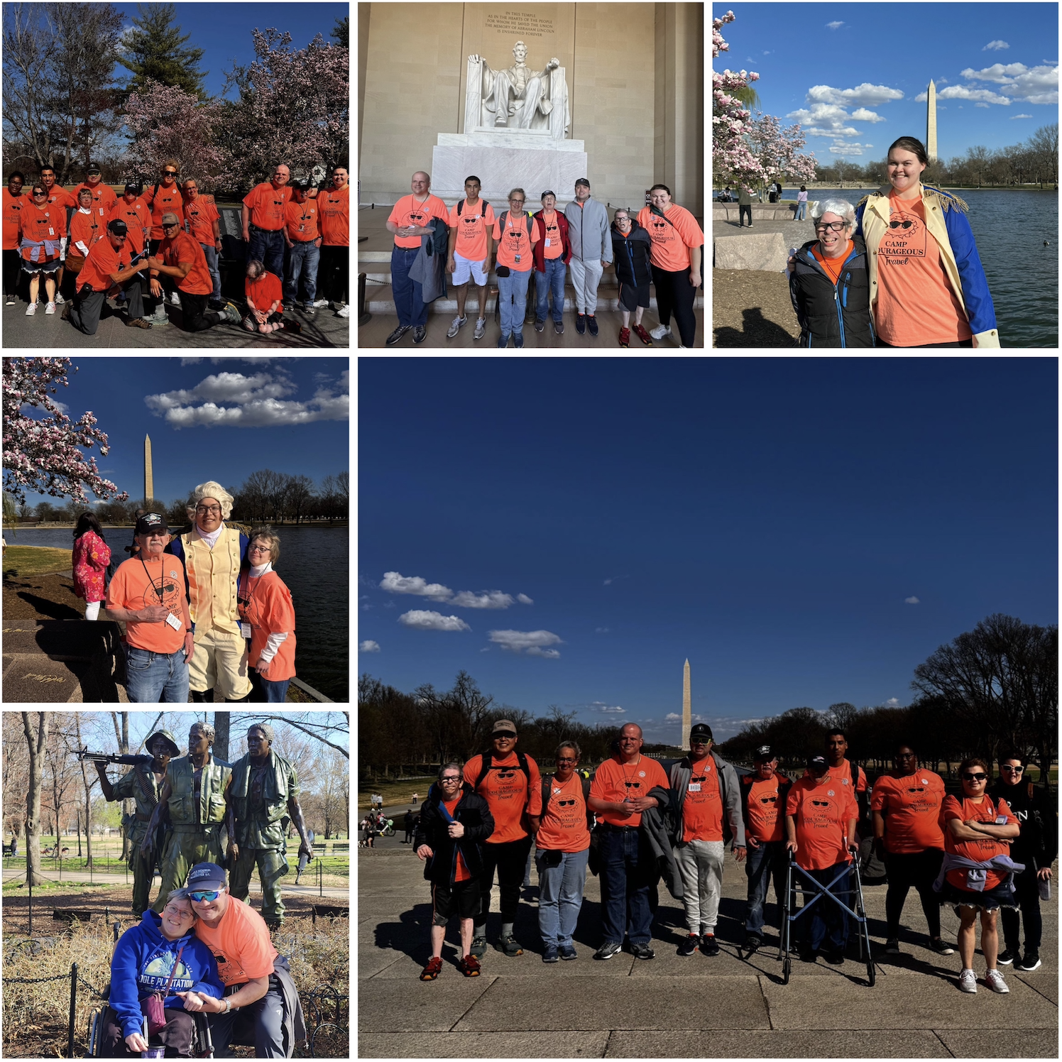Next stop: The Lincoln Memorial. Honest Abe, looking as stoic as ever, watches over us as we climb the steps. The Reflecting Pool shimmers under the now-perfect sky, a postcard-worthy view. From there, it’s a whirlwind of history—the haunting beauty of the Korean War Memorial, the towering presence of the Washington Monument, and a bonus stop at a small island where, for reasons unclear, a George Washington reenactor appears from the past to grace us with his presence. Just another day in DC.