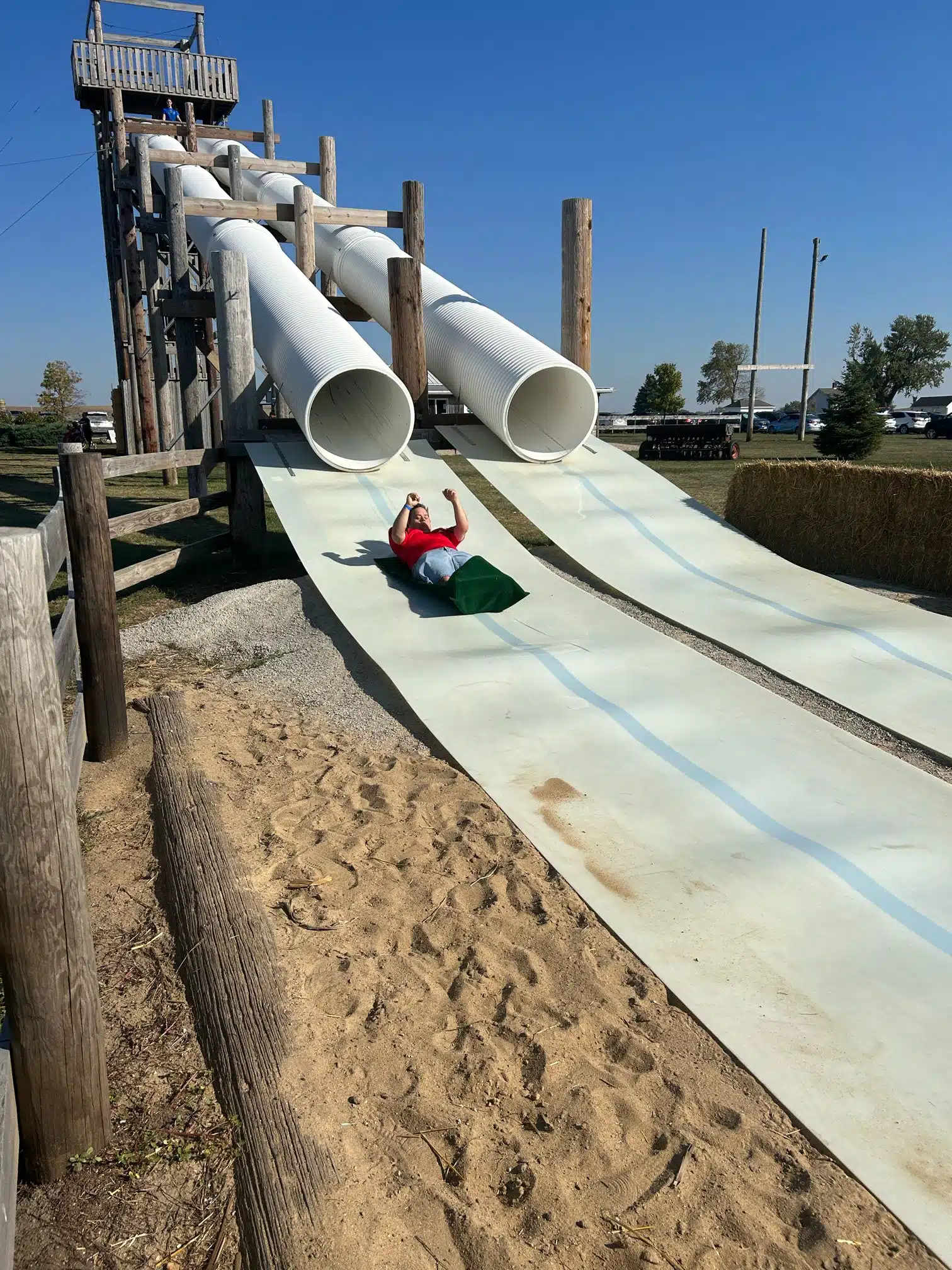 The travel group attended the fall festival at Bloomsbury farm! The campers rode on a hayride, played games, picked pumpkins, visited the gift shop, slid down a slide, and had delicious drinks.