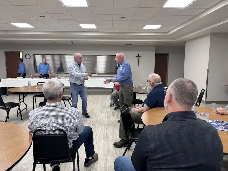 A warm Camp Courageous appreciation goes out to the DeWitt Knights of Columbus for their donation from Tootsie Roll Money raised for the Intellectually Disabled to Camp. Council 959’s invited Camp to their Chili Supper for the charities they support. Here Knight Scott Tarchinski presents Craig Lampe with a check for Camp Courageous.
