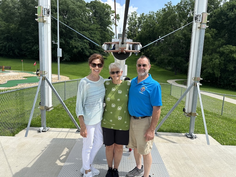 (L-R) Chris (Jim) Hermes and Denise & Gary Mosher visit Camp Courageous to tour and present a check from Dixon IL Council No. 690, Knights of Columbus.