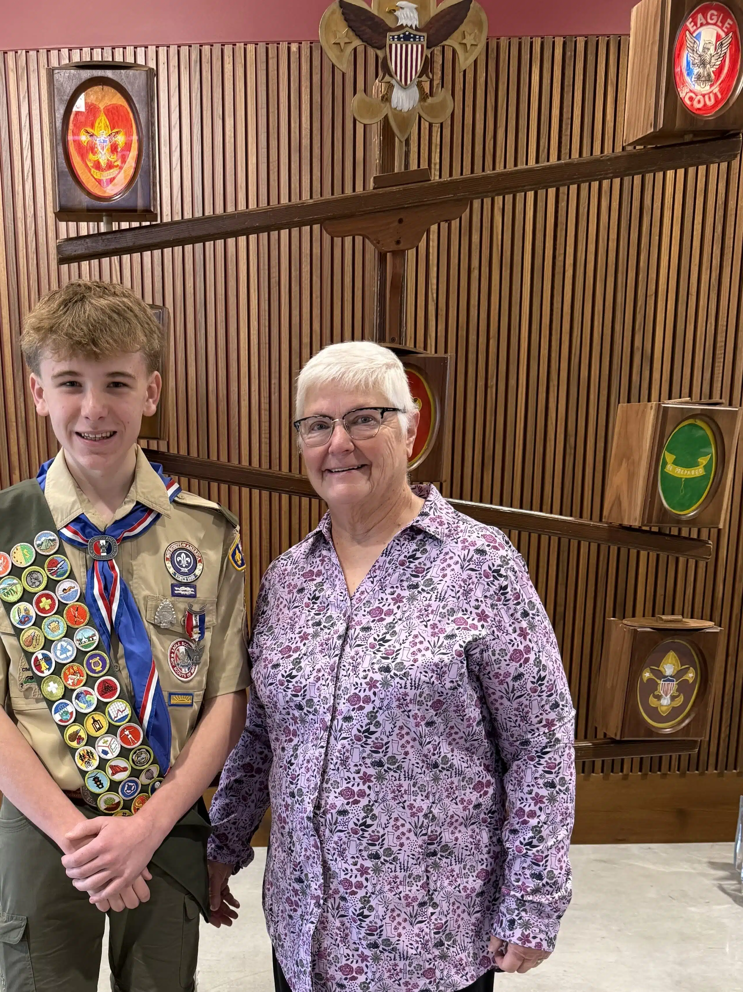 Garrett Smith, and Eagle Scout, successfully transformed an overgrown flower garden at Camp Courageous into a vibrant and welcoming area for campers. He removed lilac bushes and revitalized the space to create an inviting environment. He did this under camp’s volunteer Rita Wolf (who is pictured with Garrett) leadership. Thank you Garrett for your hard work and dedication and congratulations on achieving your Eagle Scout honor.