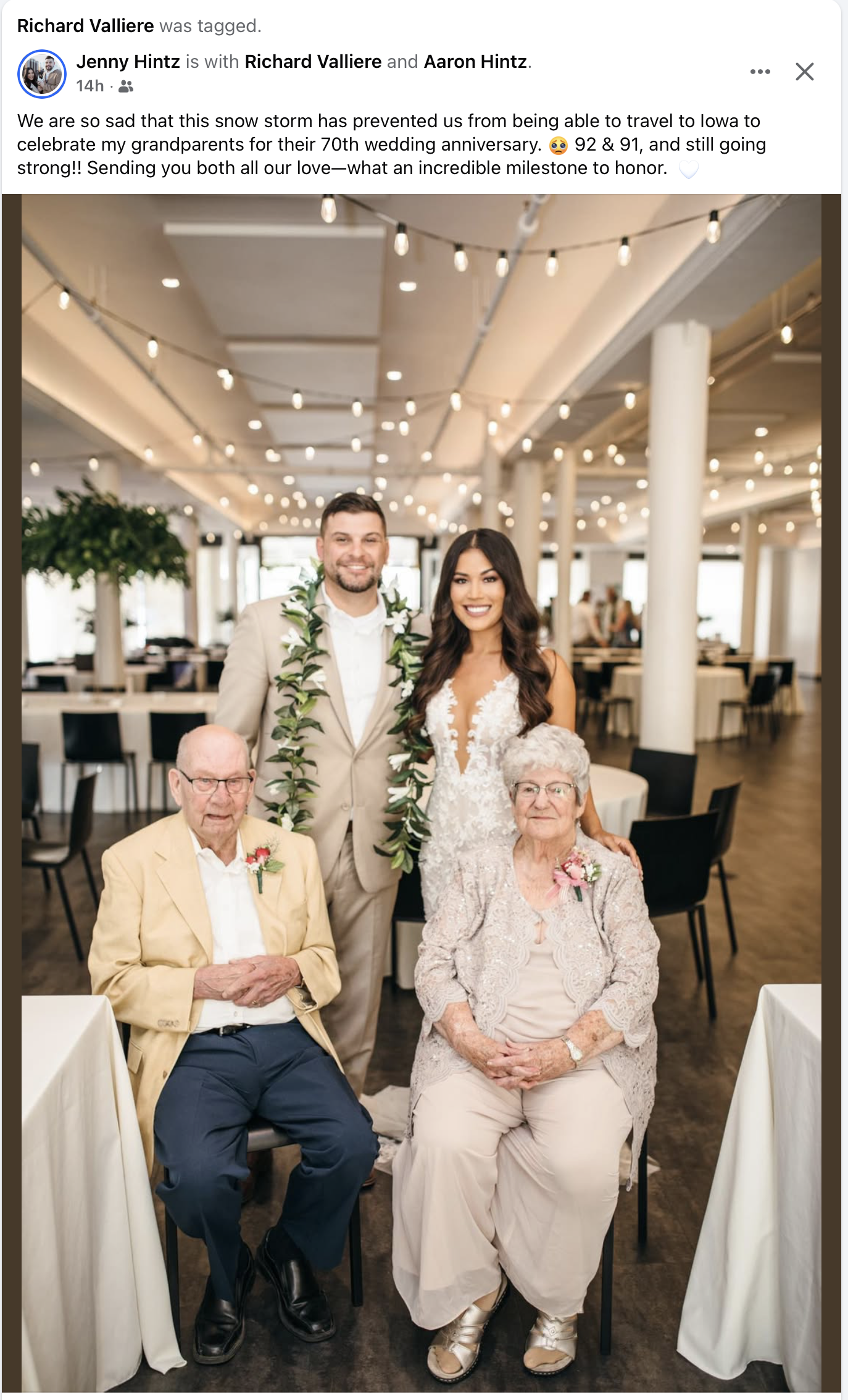Happy 70th Wedding Anniversary to Camp Courageous Honorary Board Member Liz (Hennessey) Valliere and Dick Vallierre!