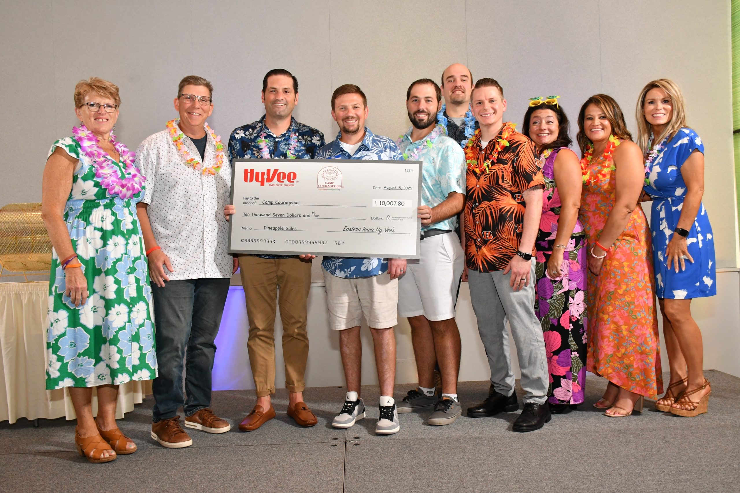 A big thank you to Camp’s Friends at Hy-Vee for all their work that went into this year’s pineapple sales and pineapple brat sales. It was a super year! All these folks also help with the Pineapple Gala, where this year’s top auction items were donated by Hy-Vee!