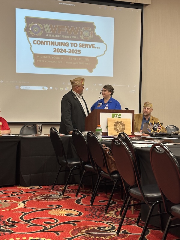 Camp Courageous congratulates the Iowa V.F.W. & Auxiliary (Veterans Of Foreign Wars) on their 104th Annual Convention! Camp is humbled and grateful they have chosen to be supportive of Camp Courageous for 50+ of their 104-years! It was an exceptional Convention with Mike Young, as VFW State Commander and Renee Quinn as VFW Auxiliary State President. A special thank you too, to Russell “Doc” Saffell, State Adjustant (COO) (R) for his behind the scenes work to make everything run to perfection. They have had an outstanding year! The outpouring of support from this group, warms the heart.