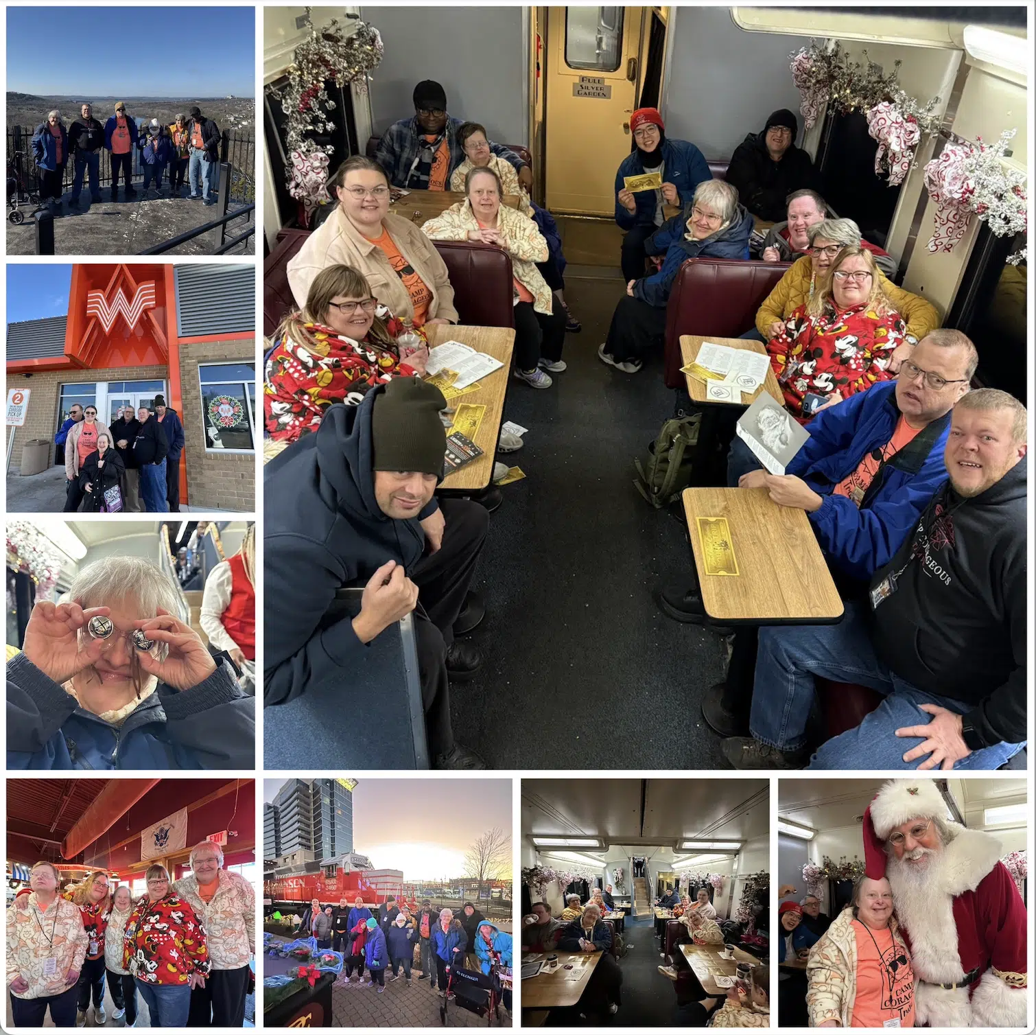 We drifted through the outlet stores, wandering from place to place with no real mission, just the quiet pleasure of movement. The ladies climbed onto a small train that circled the area, laughing with the easy joy of people. The gentlemen posed with Santa.