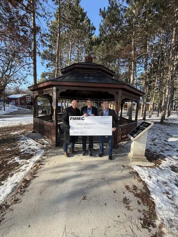 It was a honor to have (L) Ron Burmeister, (Bettendorf, IA) Chair of the Board and (R) Pat Rounds, (Urbandale, IA) CEO of Petroleum Marketers Management Insurance Company travel to Camp Courageous, to present a check to Camp Courageous in Honor of Charlie Becker’s 46-years as the Camp’s director. Forty-five of those 46-years has been in a very close relationship with FUELIowa (formerly the Petroleum Marketers & Convenience Stores of Iowa). PMMIC is the industry leader in providing petroleum storage tank liability coverage for underground storage tank insurance. PMMIC is owned by petroleum marketers of the past and present. The check presentation was made in front of the FUELIowa Gazebo at the Center of Camp Courageous. The Gazebo was provided by long time Petroleum Marketer and Friend of Camp Courageous, Ron McGauvran. Ron McGauvran was among the original PMMIC Board Members…a real legend in the industry and in his kindness to others.