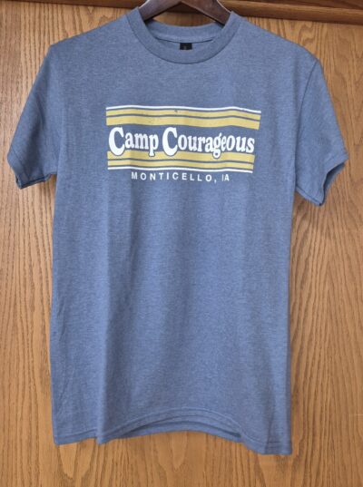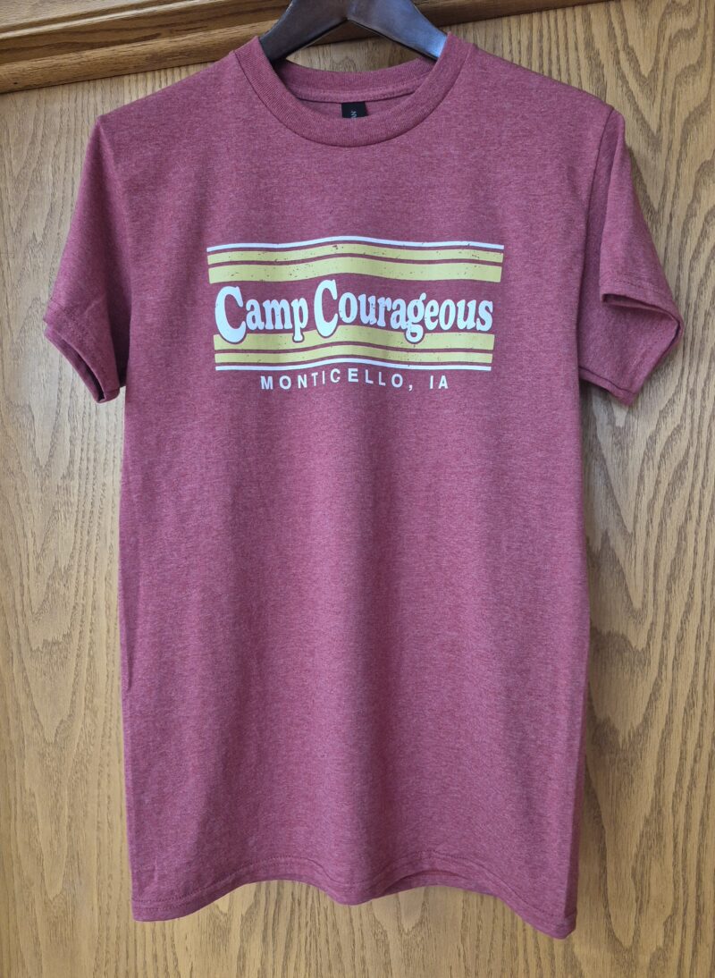 If you’re in the market for a new T-shirt, you might want to consider this distressed Camp Courageous T-shirt. It’s made of ultra cotton Gildan fabric, with a blend of 50% cotton and 50% polyester, providing a comfortable and durable wear. You can choose from two awesome colors: heather cardinal and heather indigo. The shirt features the Camp Courageous Monticello, IA logo printed in white with vegas gold stripes.