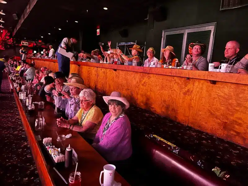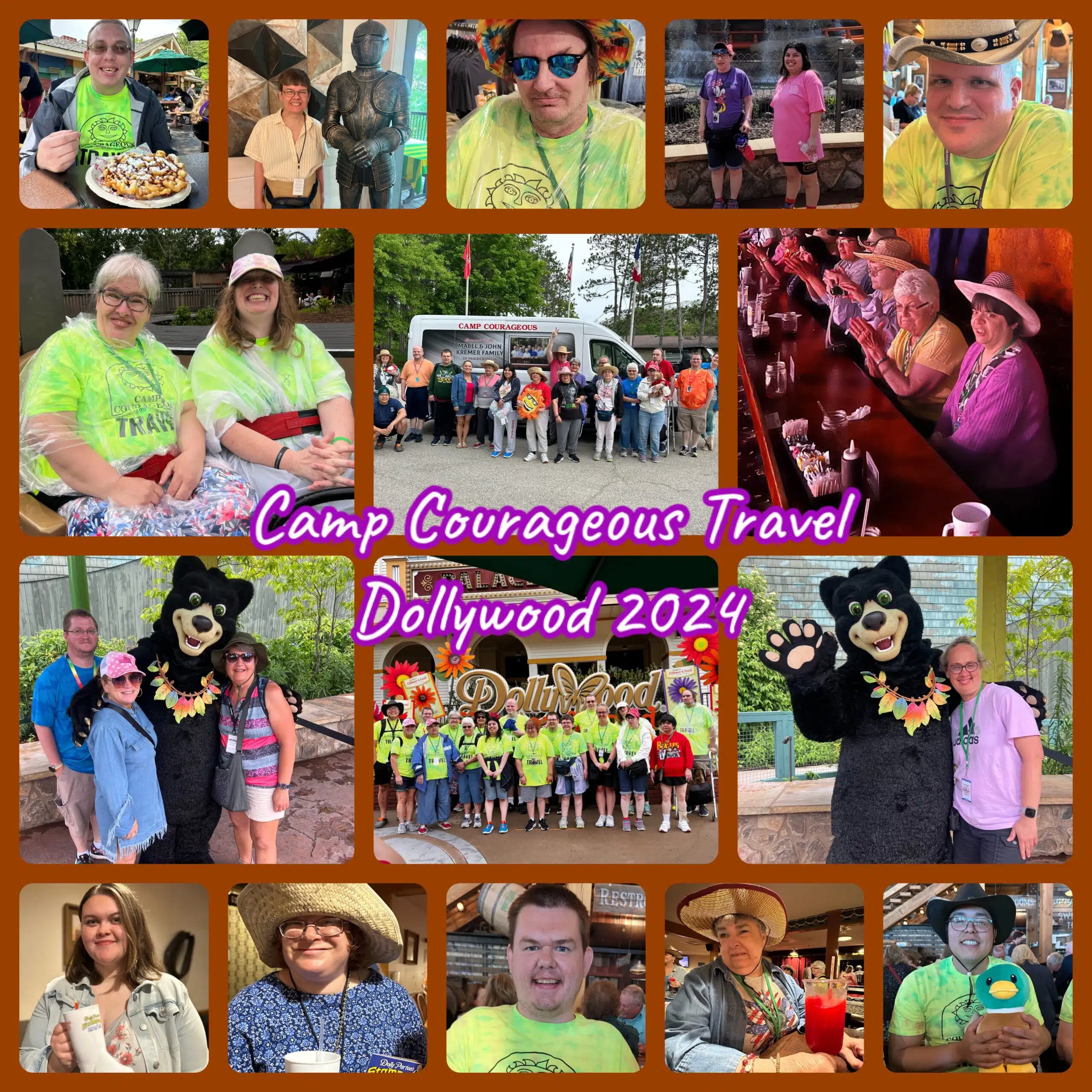 Who’s ready for Dollywood? This here travel group’s rarin’ to go! At the crack of dawn, just like the pioneers, the campers woke up eager for a day packed with fun. We all enjoyed a breakfast classic: bacon, eggs, and toast. Once we finished, we donned our matching shirts, grabbed our cowboy hats, and saddled up our metal steeds for the journey ahead.