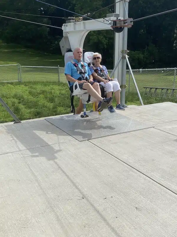 Ron made the day for a group of ladies touring Camp Courageous, as he rode the Camp’s zipline with one.