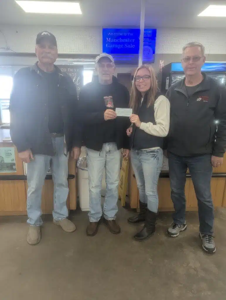 The Ryan Nationals Car Club from Ryan, IA, has an annual car show.  This year some of the proceeds from that show went to benefit Camp Courageous.  Here (L-R)  Bob Hoster, Mike McElliott, (Jennifer Galvin-MGS) and Mike Kraft present a check from the car show to Manchester Garage Sale’s Jennifer Galvin.  Bob & Mike are regulars at Cruisin’ for Camp Courageous, not only attending, but bringing their cars.  They remarked how impressed they are with the facilities and improvements, every time they come to the show.  They also know campers that benefit from Camp Courageous and what a great time they have coming to Camp.  Thank you, Ryan Nationals Car Club for your many years of support!