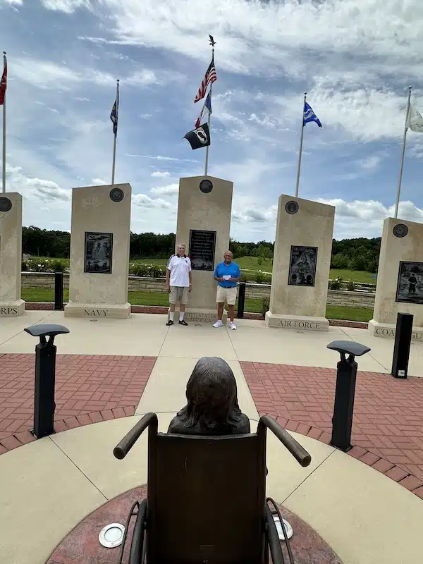 A huge thank you to the Solon American Legion Stinocher Post #460 for their many years, supporting Camp Courageous. (L-R) Jim Leland, 94, long time member and Past Post Commander of the Solon American Legion Post 460 and Past State Vice Commander and with Jim is past American Legion Commander, Henry Rios, as the present Camp Courageous with a check at the Mainliner Memorial Park. Both took the time to see and hear more about Camp, as they toured the facilities. Henry has been Chair of their 9-member Golf Benefit that raised much of the money. Huge thank you to the Solon American Legion Stinocher Post #460 for their years of support and for taking the time to personally see Camp! Camp will be forever grateful for their service…something we think about every morning when the campers raise the flag…
