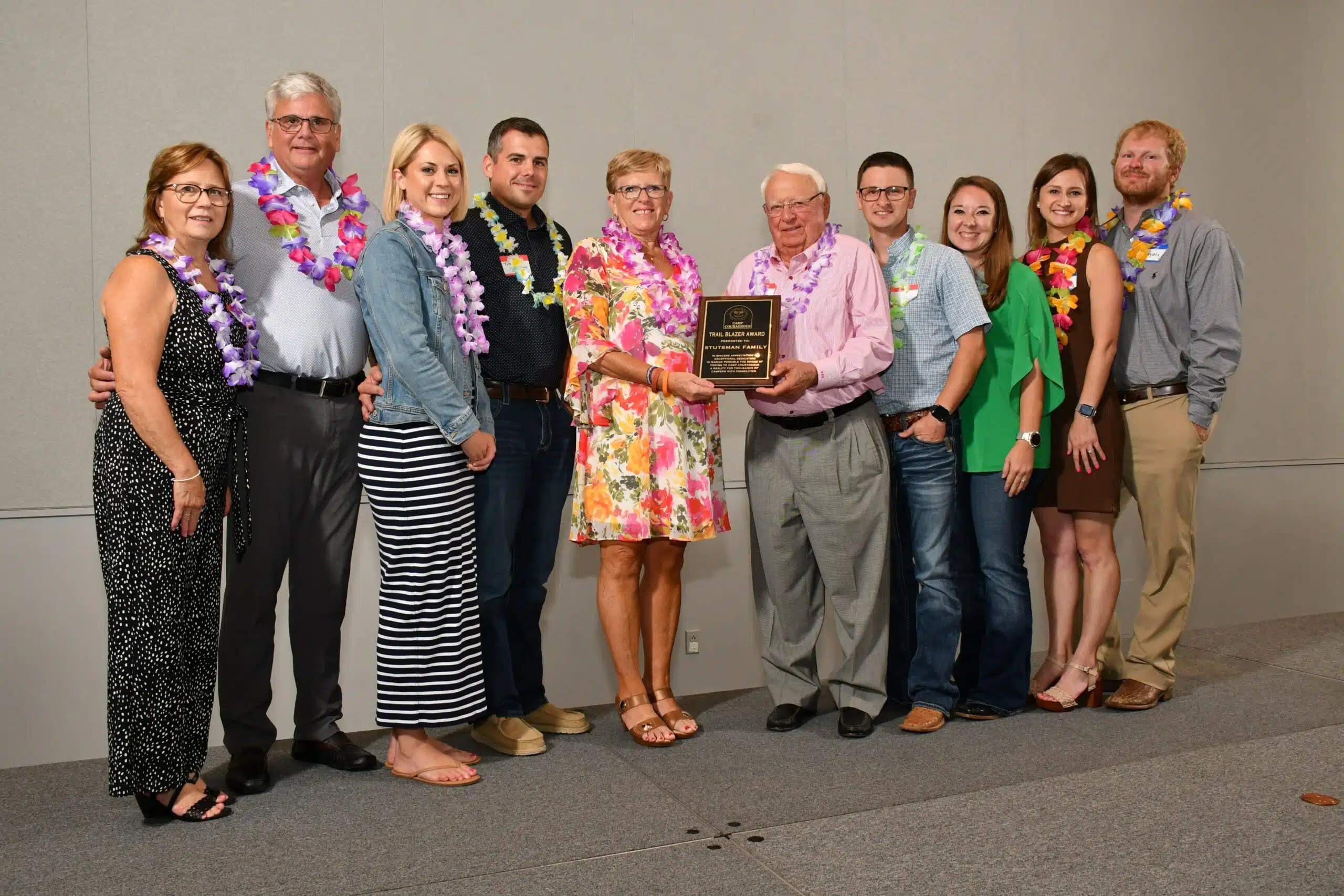 This year’s Pineapple Gala recognized the 2024 Trailblazer Award recipients, Camp’s dear friends the Stutsman Family and the Eldon C. Stutsman, Inc family owned business, headquartered in beautiful Hills, IA.  Camp Courageous’ relationship with the Stutsman Family and business began over 40-years ago when Company Founder, Eldon C. Stutsman was attending an Old Capital Kiwanis meeting in Iowa City and Camp Courageous was the program.  Eldon Stutsman’s passion for people and helping others led him to love all things Camp Courageous.  Dating back to the early 80s, he would make monthly road trips to the camp with a trunk full of needed items. This passion has continued through generations of the Stutsman family and the business.  From the Camp’s Needs List, printed in the Camp’s newsletter, The Courier, Eldon quickly saw where there were Camp needs that his company could provide the Camp.  Thus began a direct tie between the Camp and the Eldon C. Stutsman Inc which began as bags of salt for Camp’s water softening system to bags of wood shavings for the camp’s animals.
