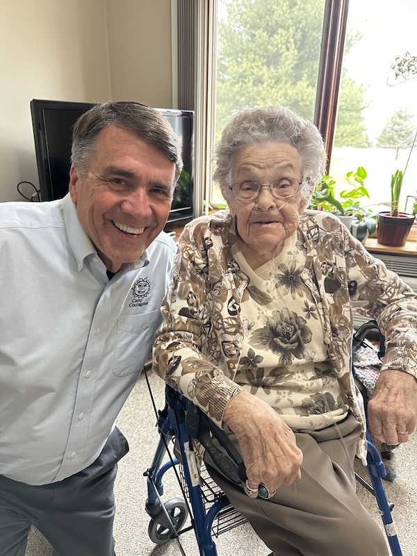 “The more one gives, the more it comes back, many times over.”  Vera Gienapp is the perfect example.  Turning 104-years-old on March 8th, Vera spent decades in a leadership role at the Camp Courageous Manchester Garage Sale, Camp’s largest fund raiser.  Her delightful positive personality on everything, makes her a true joy to be around.  Her husband, Bud Gienapp, was also a delight and a hardworking volunteer for Camp.   Bud passed at the age of 94 in 2017.  They had been married for 71-years!  Camp has seen a real correlation between its supporters and longevity…could the Camp be the Fountain of Youth? 😊
