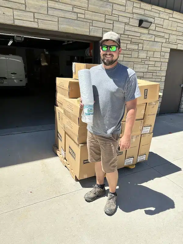A huge thank you to Community Oil, of Carroll, IA, for their decades of support of Camp Courageous! Todd Kanne had mentioned at this year’s FUELIowa Golf Benefit for Camp Courageous that they had some cups to donate. Camp was delighted when Connor Kanne (grandson of Chico and nephew to Todd) pulled into Camp with 4 pallets of a variety of cups…all that Camp can use. Campers with Muscular Dystrophy were the first group to be treated to some extremely nice, insulated cups, to hold water during these extremely hot days. A big thank you to Community Oil and the Kanne Family for their years of support!