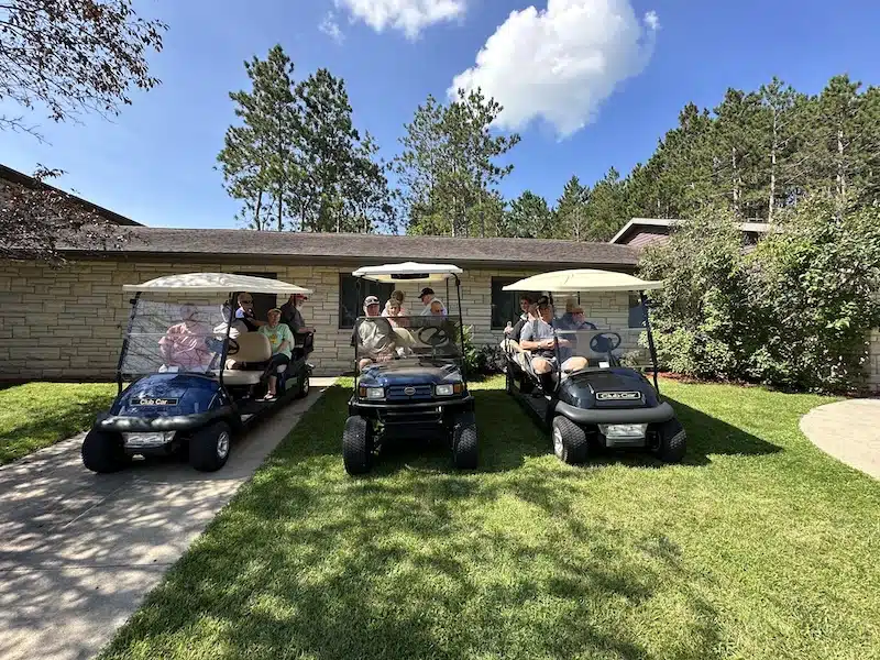 A big thank you to Bev Atkinson of Edgewood, IA who suggested a tour of Camp Courageous for the J-5 RV Park, 2024 Summer Reunion. Bev had been to Camp on many occasions with other groups and thought this group would love to visit…and they did! They had the opportunity to see the campers enjoying the camp and all the beautiful facilities. Many commented that they particularly like the fact that the Camp does not take government funding… This group represents folks, mostly from Iowa, who travel to Mission, TX each year to spend the winter. The park they stay in was started by a person from Central City, IA who had 5-kids, thus the J-5. Thank you to Bev and this wonderful group! Camp Courageous welcomes tours of the camp…or camp will come to your group…just call 319/4655916 to set-up a time.