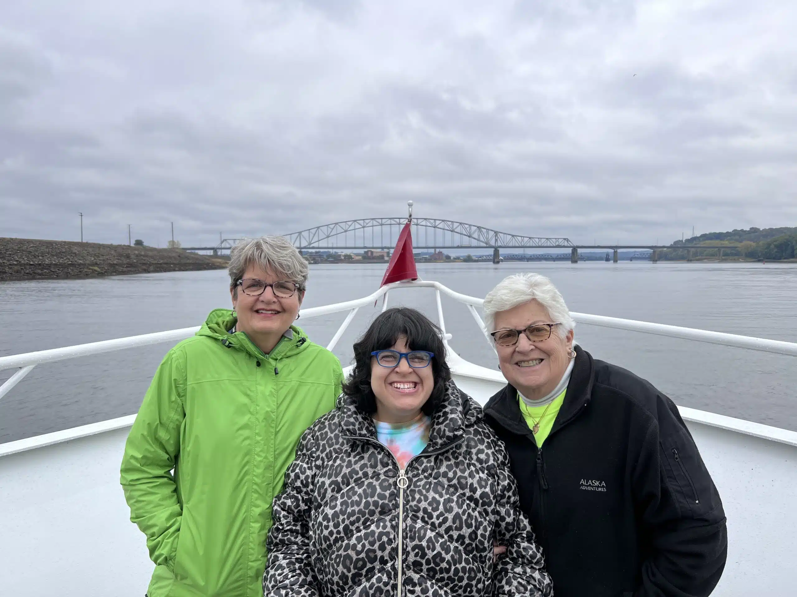 The travel group boarded the American Lady vessel and sailed along the Mississippi river, in the Dubuque area.
