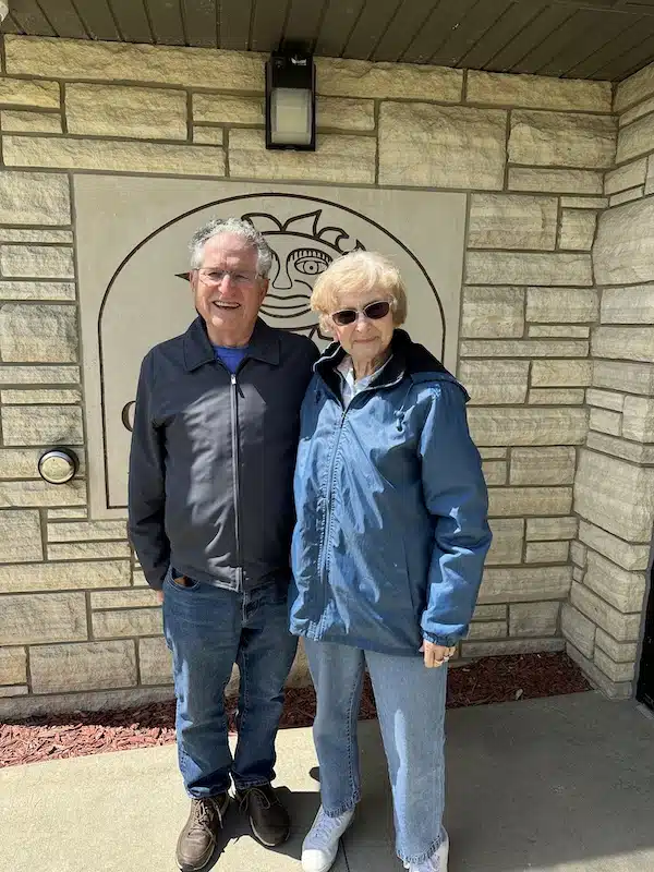 It was a wonderful treat to have Twila Griffith and Doug Daubenberger visit Camp Courageous, while out for a Saturday morning drive. Both are widowed from wonderful spouses. Doug’s roots are in Quasqueton and grew up with the late, former board member, Phil Short and family. Twila is from Dubuque. Twila’s husband, Darly Griffith was my exceptional high school Earth Science teacher. Mr., Griffith was ahead of his time, with Earth Day just starting when I was in his class in 1970. I told Twila, I wasn’t an ‘A’ student, but from the inspiration of Mr. Griffith came solar panels at Camp Courageous, saving the Camp over $120,000/year and in my personal life where solar panels power everything and the planting of thousands of trees, most from seedlings…most at a rate 250-trees/year at Camp and 250/year at home. They received a royal tour! The Griffiths have been long time supporters of Camp Courageous and Doug had heard so much about the Camp from Tait Cummins and WMT, but he could not believe what he was seeing.